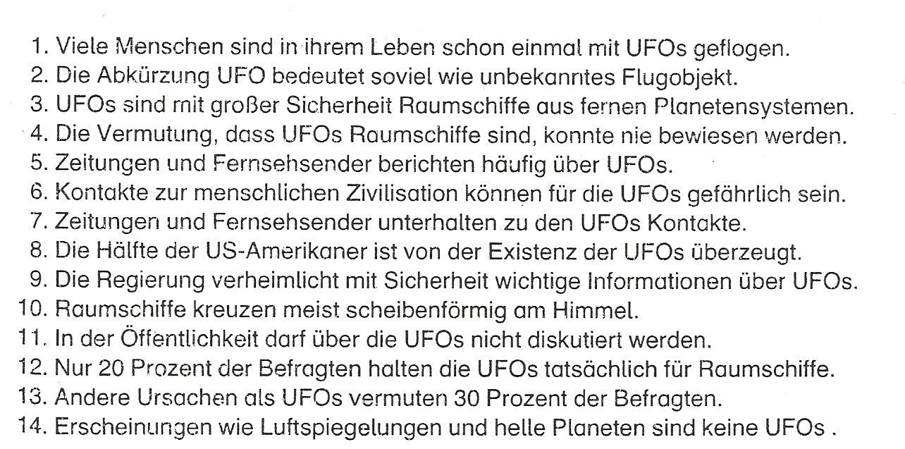 Bestimme die 7 richtigen Sätze und schreibe unten die Zahlen hinein