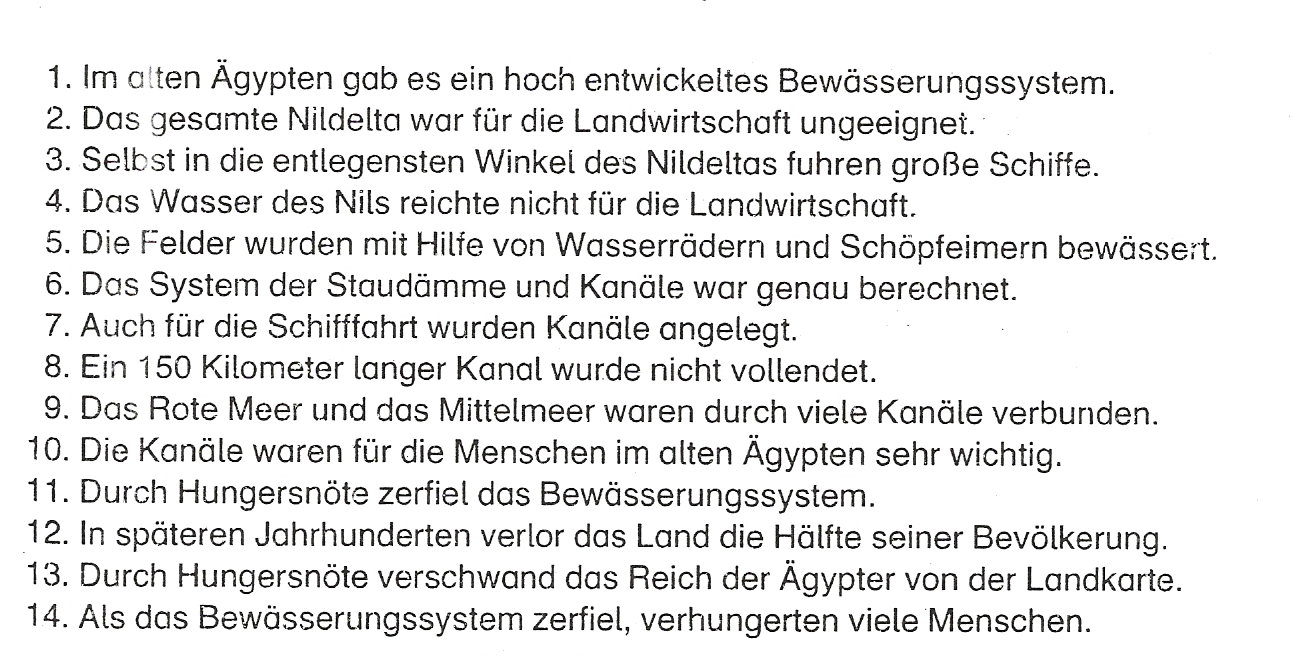 Bestimme die 7 richtigen Sätze und schreibe unten die Zahlen hinein